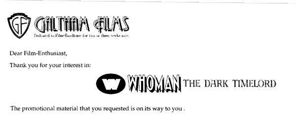 Prior to the release of Whoman, a limited number of press kits were made and distributed to build interest in the film. They're all gone now, but we're reproduced it here.